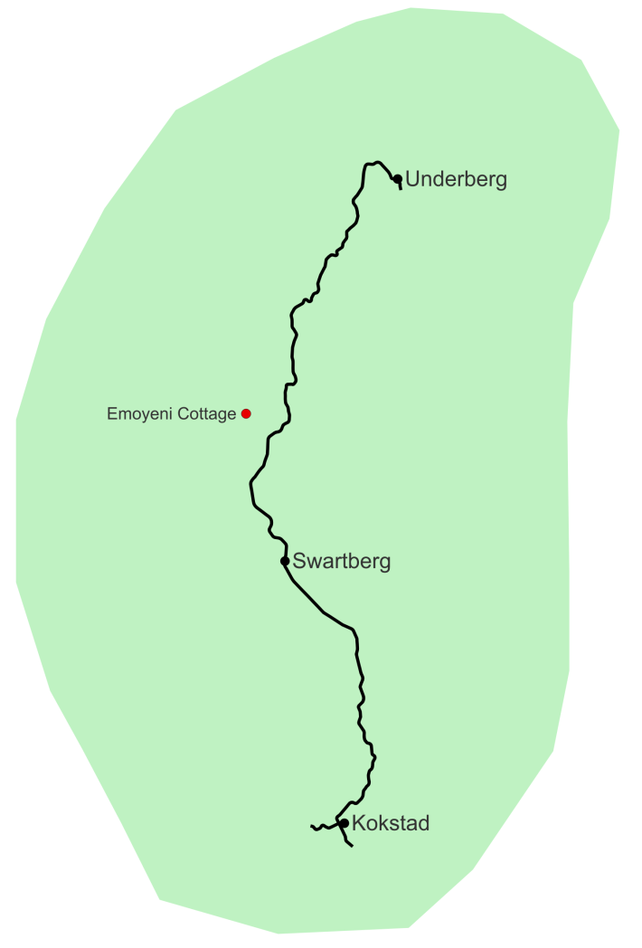Built in 1992, eMoyeni cottage is a rustic self-catering cottage nestled on the edge of the beautiful Belmont dam. It is completely off-grid, surrounded by Belmont Farm. The cottage provides a peaceful getaway, allowing you to immerse yourself in your surroundings. The dam is stocked annually with trout, making it the perfect spot for all fly fishermen, from the amateur to the well seasoned. There is an abundance of bird life, including Wattled, Blue and Crowned cranes, Cape and Bearded Vultures, King Fishers and many more.
